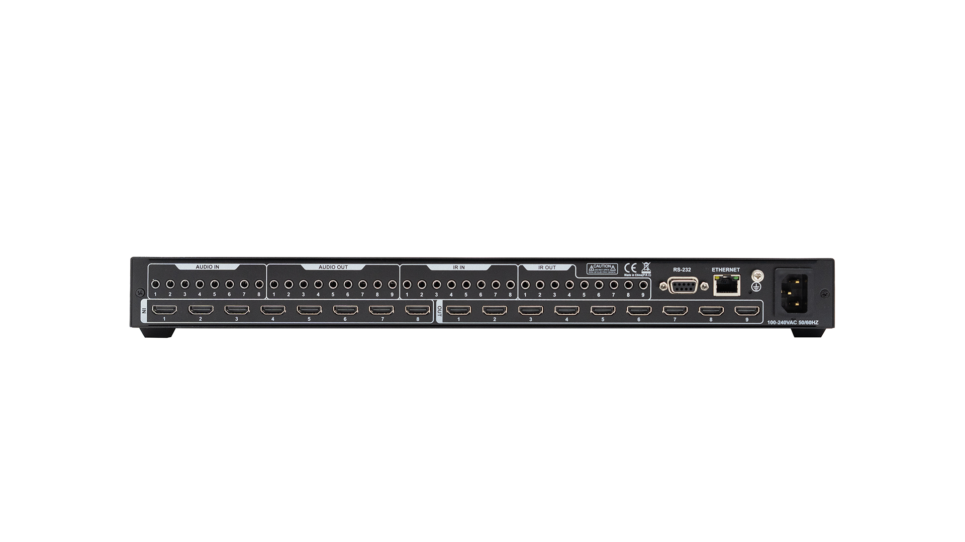 ● 8 đầu vào IR và 8 đầu vào âm thanh analog, 9 đầu ra IR và 9 đầu ra âm thanh analog